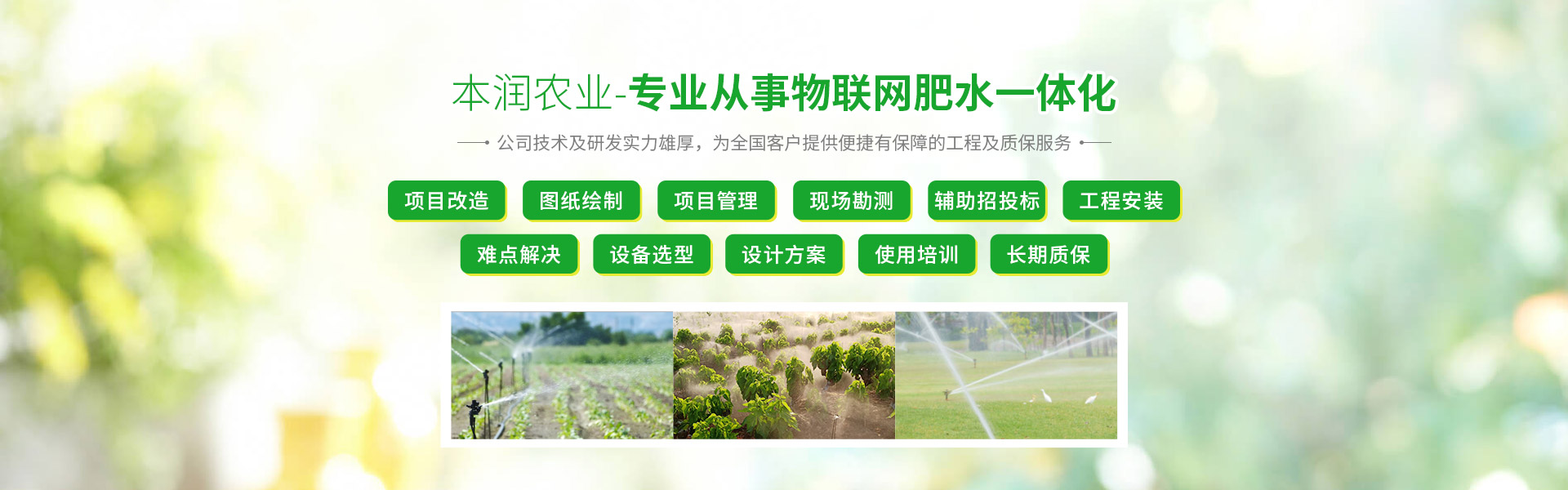 “用心做事,本潤(rùn)農(nóng)業(yè)”追求無止境,學(xué)習(xí)無止境,創(chuàng)新無止境,本潤(rùn)農(nóng)業(yè)將為您打造最專業(yè)最有保障的現(xiàn)代灌溉技術(shù)工程